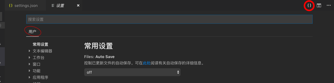 ```以开启内部终端### 外部终端(external terminal) * 配置 `⌘,` ,在`用户`设置中,以打开`settings.json`,添加以下设置 ```json { ... "terminal.external.osxExec": "iTerm.app", }