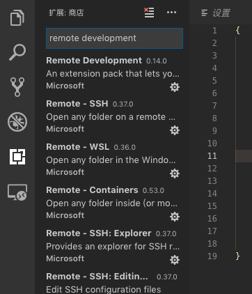 安装插件 Remote Developement ,目前(2019-5-23)只支持 VSCode-Insiders,不支持正式版VSCode