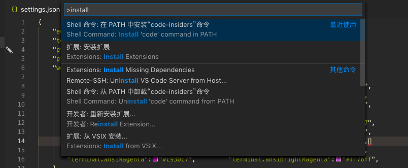 - 在命令中输入如下命令,则会用vscode-insiders打开之